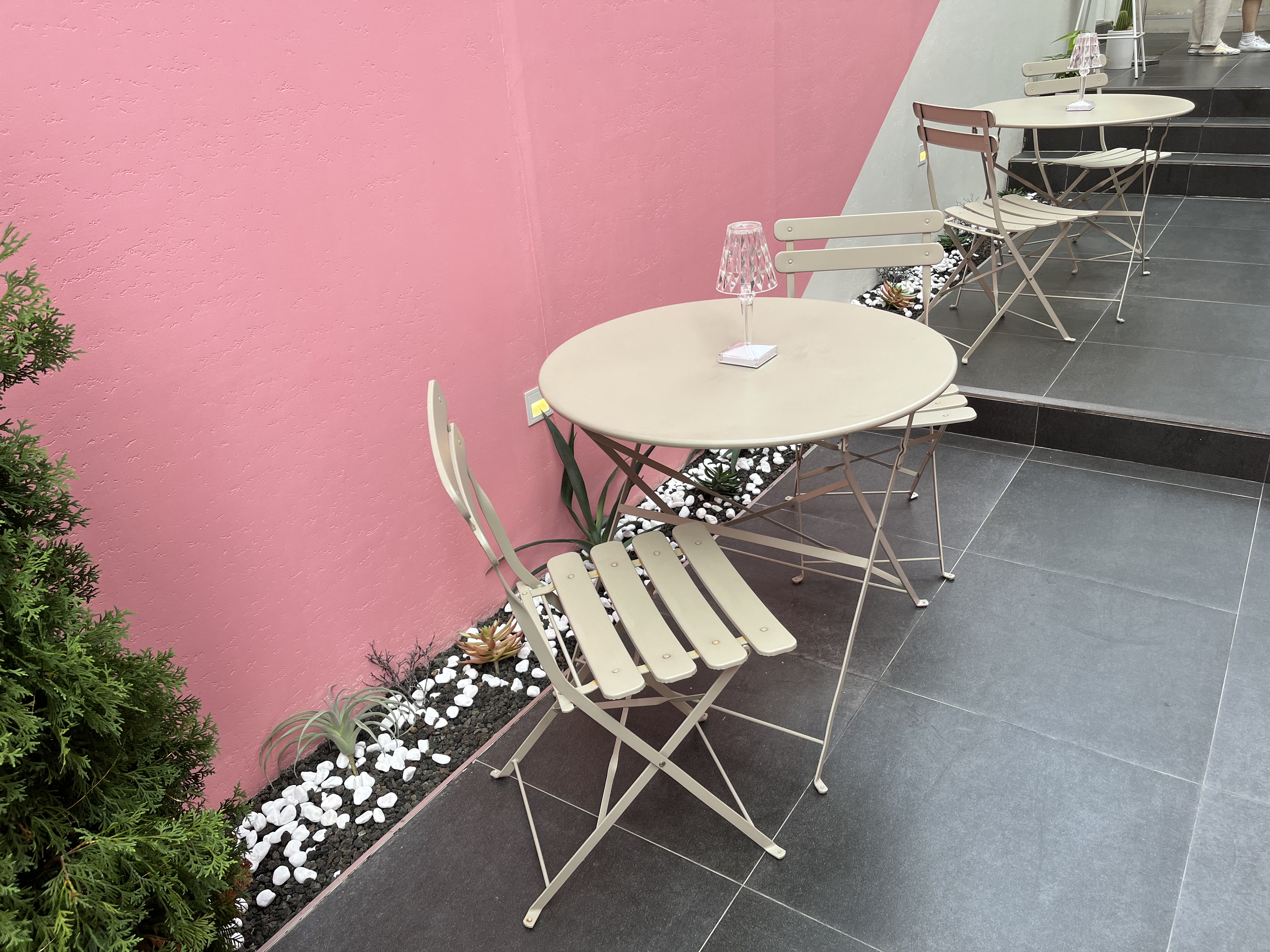 중간에 대기를 위한 의자로 보이는 테이블이 있습니다. (어쩌면 이곳도 식사를 하는 장소일지도?)