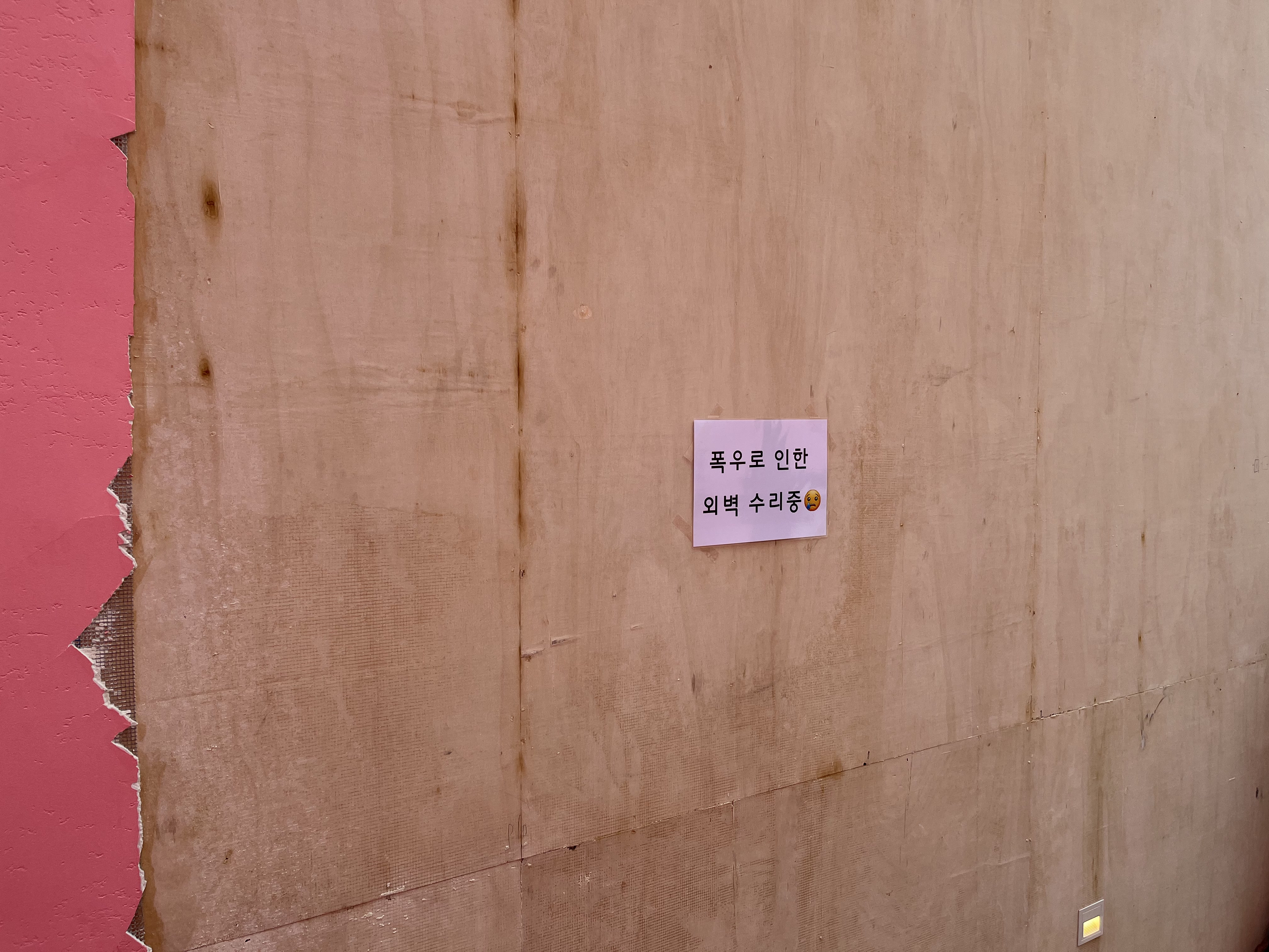 이번 폭우로 인해 입구 외벽이 무너졌나 봅니다.